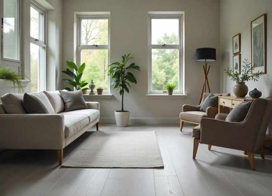 While grey flooring provides excellent neutrality, pairing it exclusively with beige or tan furniture can result in a lifeless, hotel-lobby aesthetic. Always include some colour or contrast for visual interest.