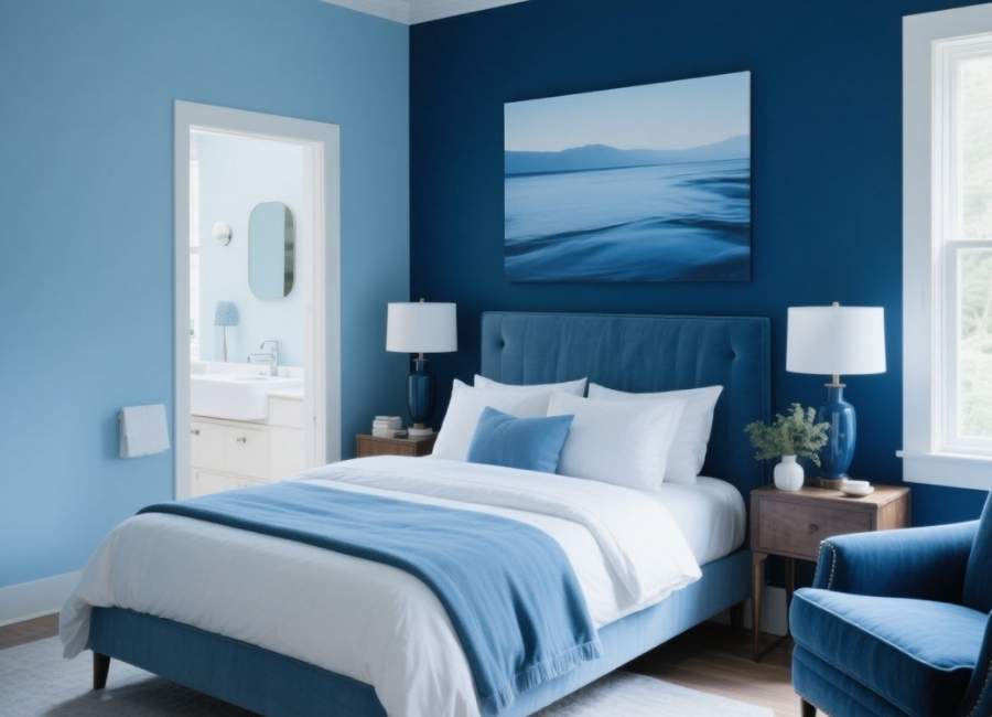 Not all blues are created equal. When selecting your shade, consider the room’s purpose, natural lighting, and surrounding décor. For example: