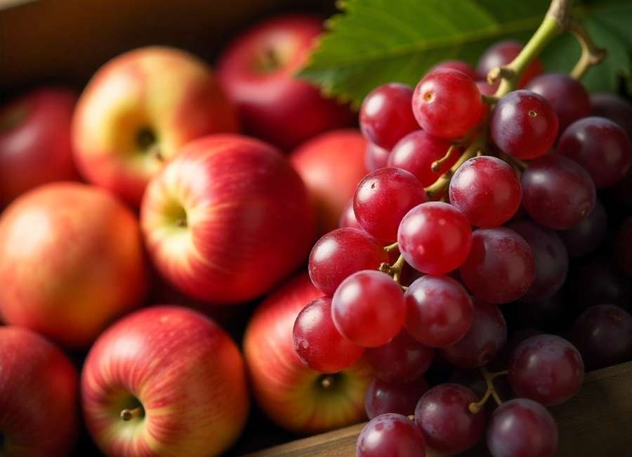Apples have a distinct aroma, and keeping them near fragrant or neutral fruits like grapes may lead to flavor transfer, altering the taste of the grapes.