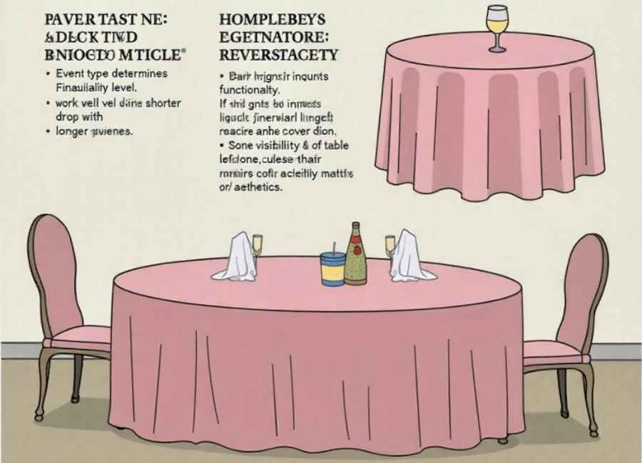 Chair height impacts functionality. If guests will be seated, ensure the drop length doesn’t interfere with comfortable seating.