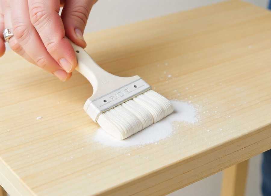 Work in sections to maintain control and ensure even coverage. Dip a natural bristle brush in the solution and apply following the wood grain direction. Avoid overlapping strokes, which can create streaks.