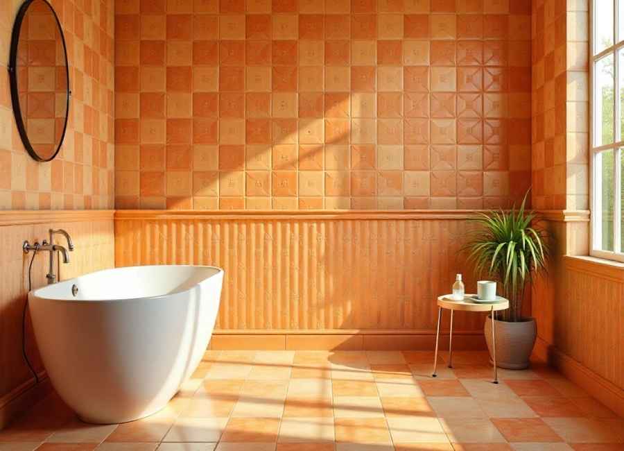 Bathrooms transform when adorned with painted tiles. Use vibrant aquatic blues and sea-inspired motifs for a spa-like effect. Painted tiles work well for walls, flooring, or even as a decorative edge along a tub or vanity.