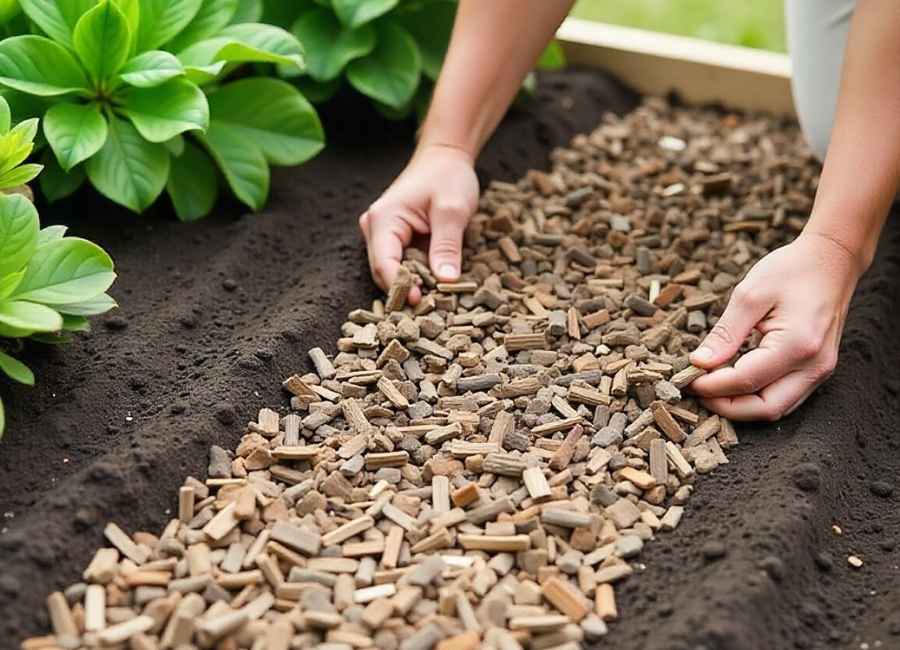 Avoid using fresh wood chips or bark directly against plant roots, as they can tie up nitrogen during decomposition.