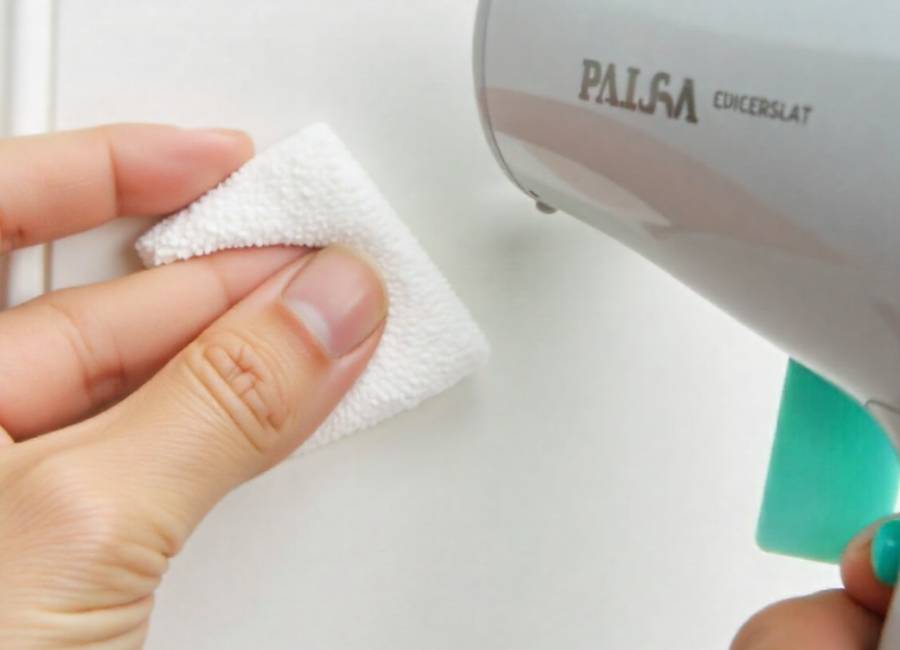 1. Set your hairdryer to a low or medium heat setting. Hold it a few inches from the sticky spot and move it back and forth for about a minute. Don’t overheat the surface, especially if it’s plastic or painted.
