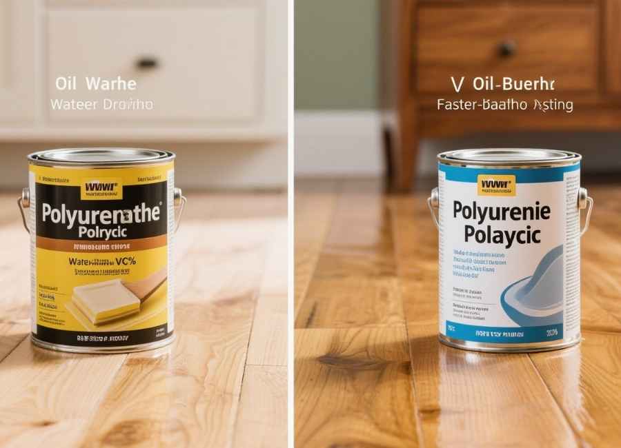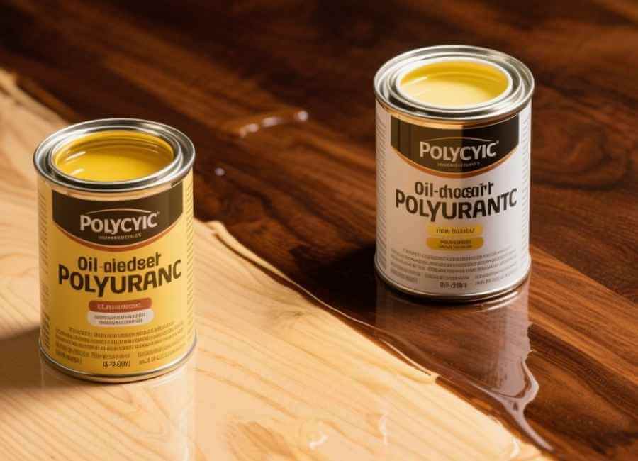 • Cleanup: Water-based products like polycrylic and water-based polyurethane are easy to clean up with soap and warm water. Oil-based polyurethane is harder to clean and needs mineral spirits or paint thinner for brushes and spills.