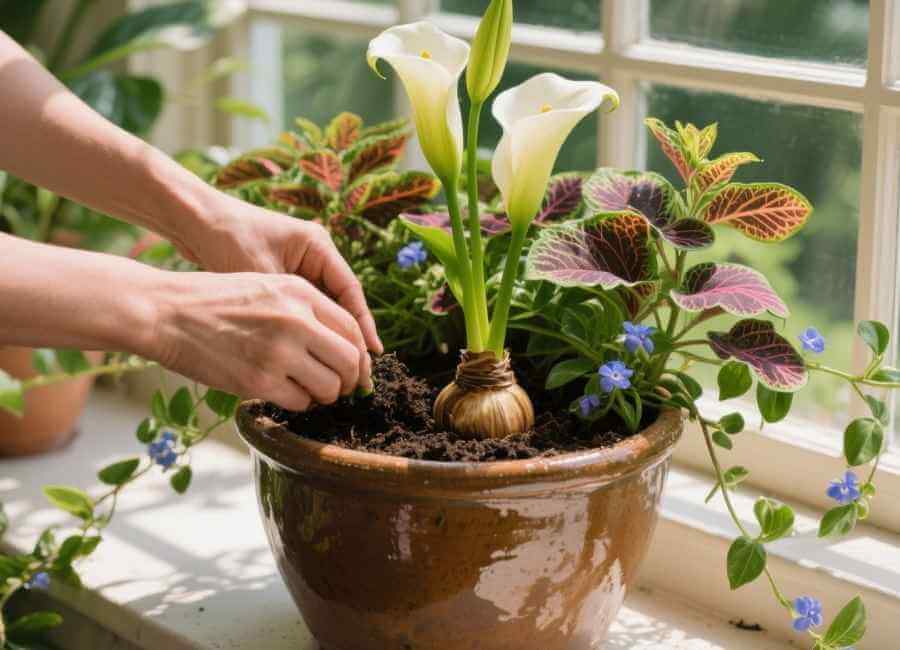 You’ll find out how to mix calla lilies with other plants for a full, layered look using the “thriller, filler, and spiller” method. We’ll also share tips on planting, fertilizing, and caring for your pot so it grows well all season. By the end, you’ll feel ready to plant a beautiful calla lily container that adds a tropical touch to your home.