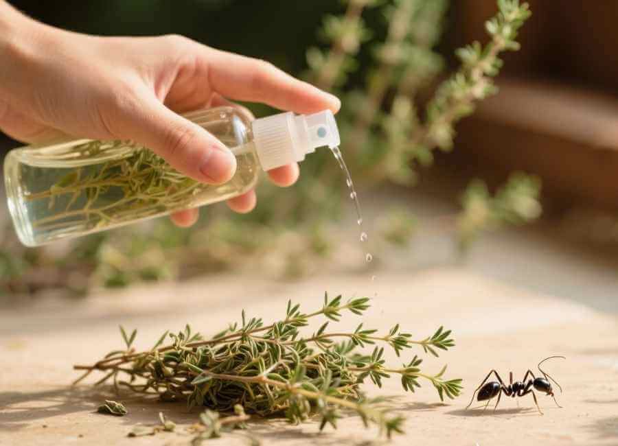 You can use both fresh and dried thyme to repel ants. Sprinkle dried thyme leaves on windowsills, in corners, and along baseboards. For a more concentrated solution, you can create a thyme-infused spray. Simply steep a handful of thyme leaves in boiling water, let it cool, and then transfer the liquid to a spray bottle. Mist this fragrant solution in ant-prone areas for a safe and natural defense against ants.