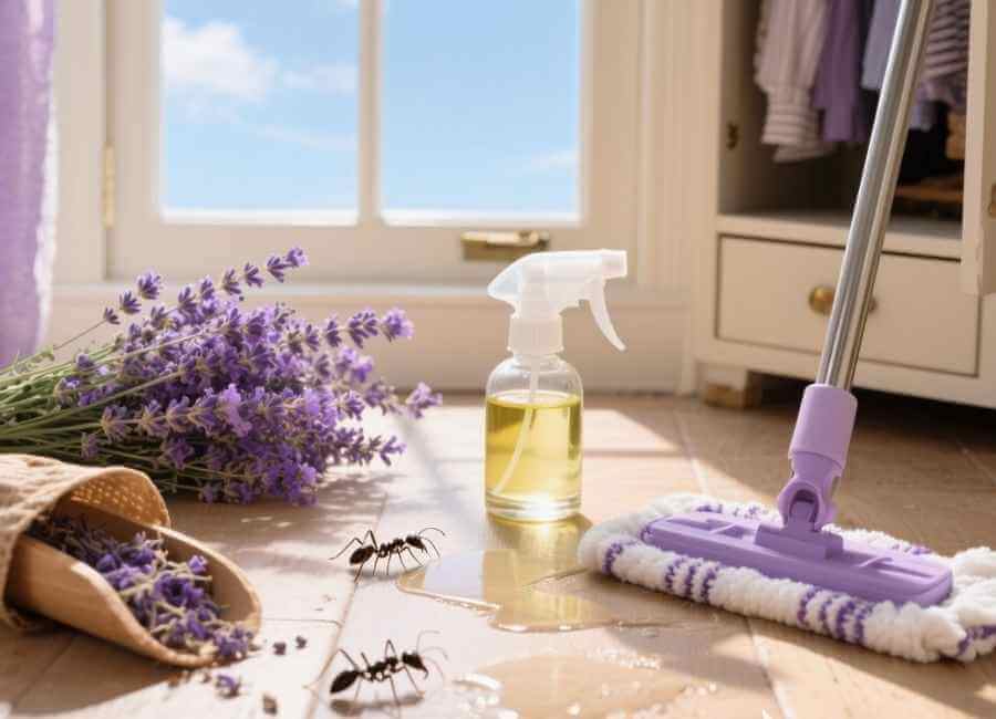 You can use lavender in two simple ways. Put dried lavender in closets, drawers, and near entry points to keep ants out. Or, mix 15 to 20 drops of lavender oil with a cup of water in a spray bottle and spray it along windows, doors, and other problem areas. This will make your home smell great and keep ants away.