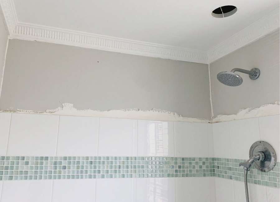 A glass mosaic strip gives a custom touch and solves layout issues. Adjust its height to avoid slivers of tile at the shower top, ensuring a full or nearly full tile at the ceiling.