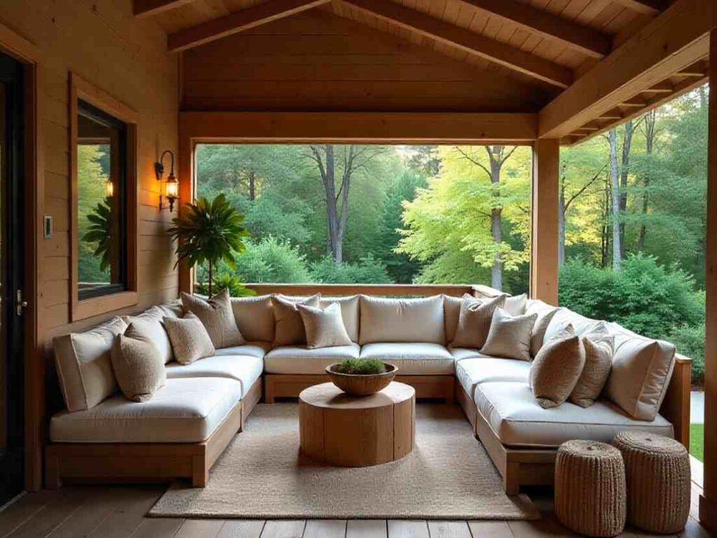 Your covered deck doesn’t need to be a massive addition. This one cleverly utilizes the Home’s existing overhang and is tucked into a corner, creating an ultra-private outdoor lounge. Placing the sofa along the shorter wall helps the space feel more open and roomy despite its compact footprint.