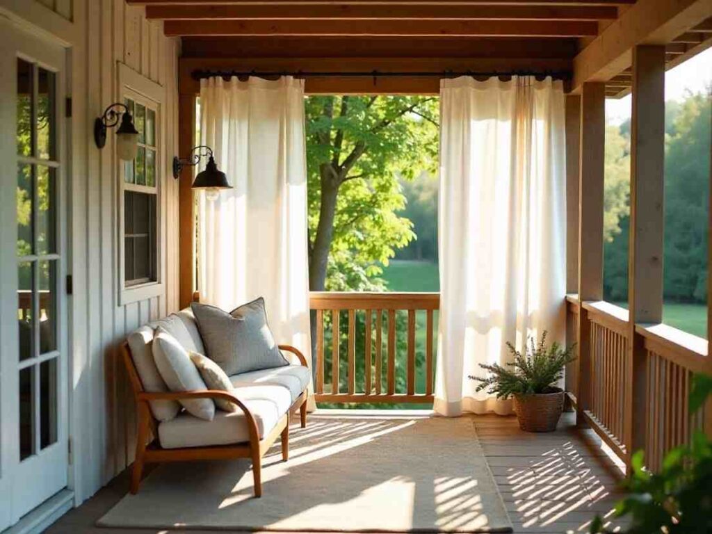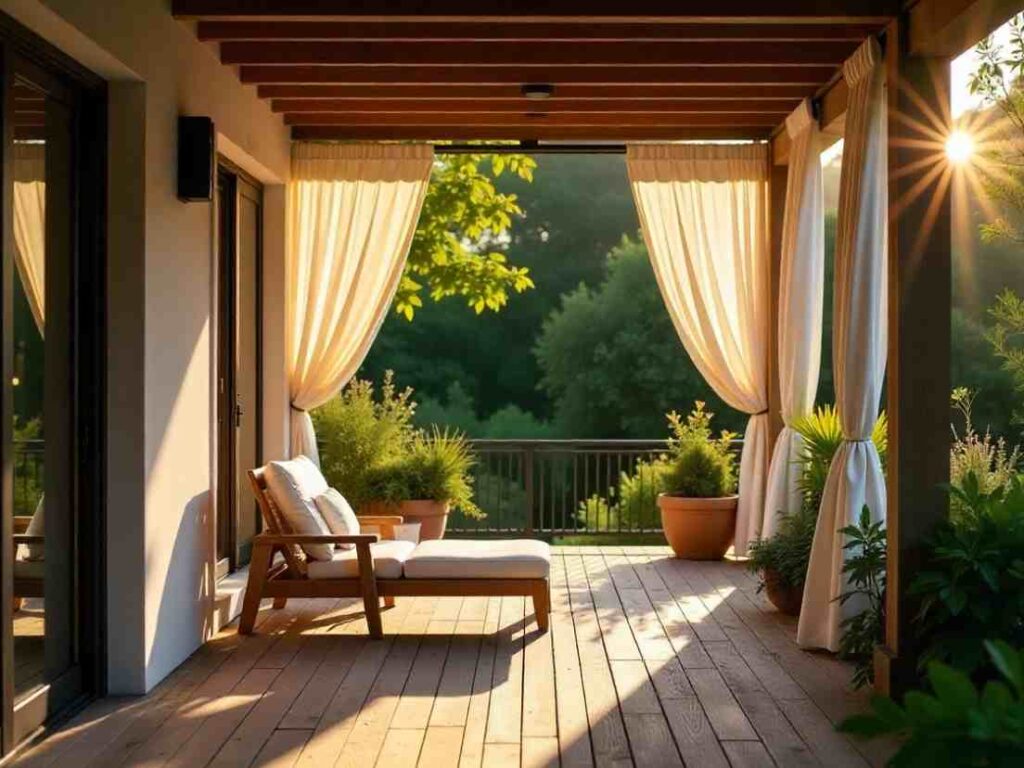 To add privacy and style without spending much, hang sheer outdoor curtains. You don’t need to build anything new—just use the beams or structures you already have. White curtains add elegance and, when closed, create a private, shaded spot.
