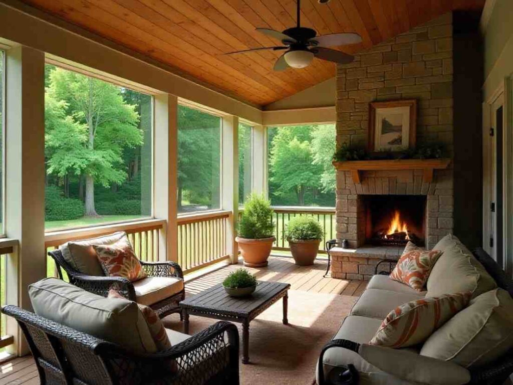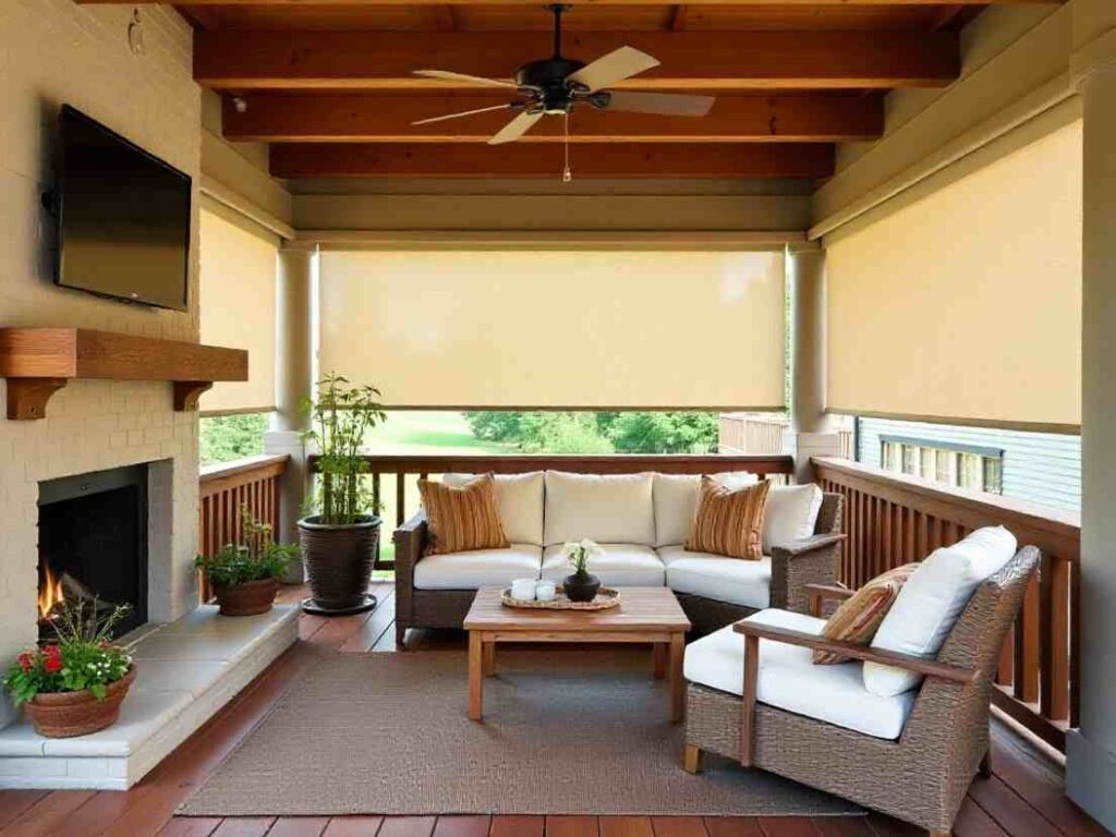 Screening in a covered deck makes it a functional space for most of the year. (5 Benefits of Having a Covered Deck, 2025) By adding a solid roof overhang and screening in the sides, you can keep pests out while enjoying the fresh air. (Deck with Screened-In Roof – Coatesville, PA – Integrous Fences and Decks, n.d.) Installing an outdoor fireplace at one end creates a cozy gathering spot that you can use even during the cooler months.