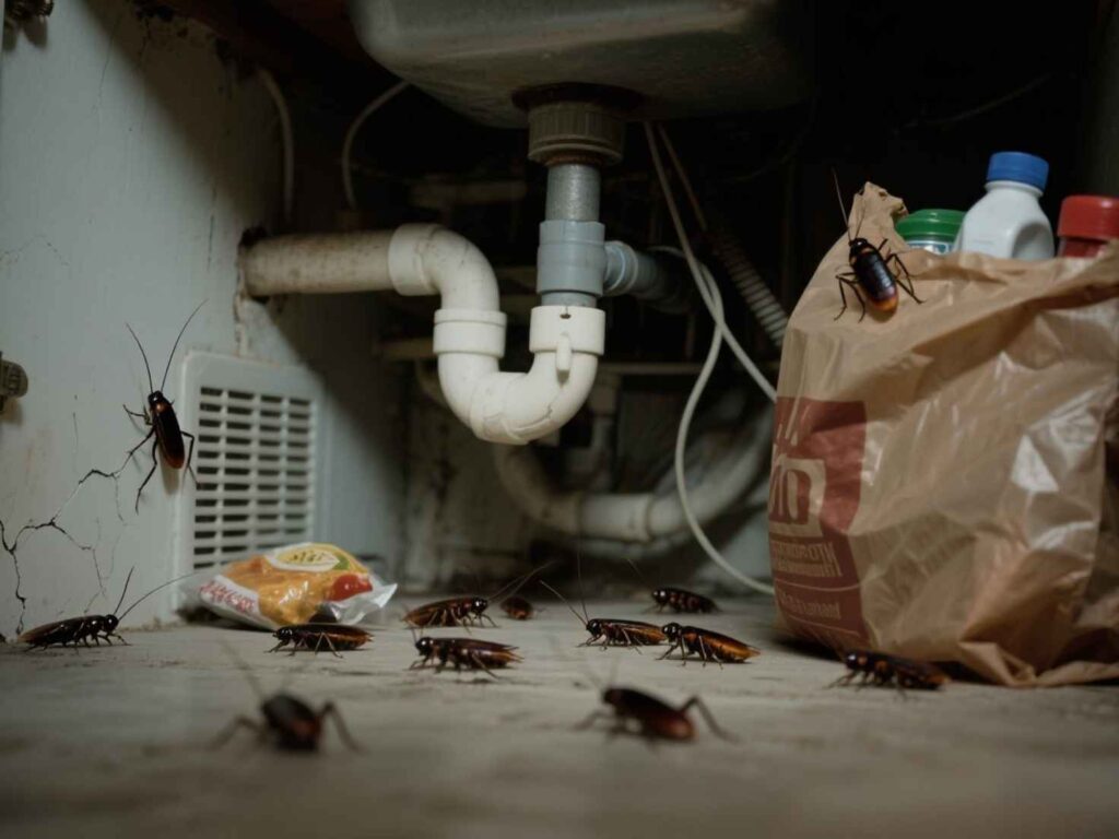 Cockroaches are great at surviving. Their sensitive antennae help them find even tiny traces of food and water from far away. They come out at night to look for food, when it’s safer for them. enter homes through cracks in the foundation, gaps around pipes, vents, or by hitching a ride in grocery bags and boxes. Once inside, they seek out dark, moist, and undisturbed areas to hide during the day. Common hiding spots include: