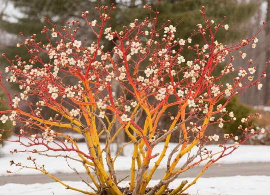 Dogwood shrubs belong to the Cornus genus, which they share with the larger dogwood trees. (Cornus – Wikipedia, n.d.) Unlike the trees, which are famous for their springtime flowers, these shrubs are often celebrated for their striking winter appearance. Varieties like the Tartarian or red osier dogwood feature brilliant red, yellow, or orange stems, providing a pop of color in a dormant garden. (Arctic Fire® Yellow – Red-Osier Dogwood – Cornus stolonifera, n.d.)