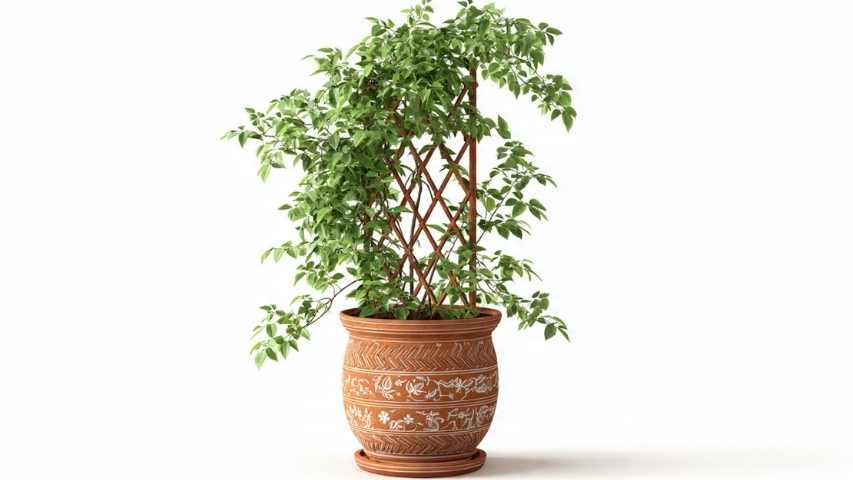 Choose a pot that is roughly twice the size of the plant’s root system. This gives it ample space to grow for a couple of years before needing to be repotted. Ensure the pot has large drainage holes. If you plan to use a trellis, a heavier pot made of terra-cotta is a good choice to prevent it from tipping over as the plant grows taller.