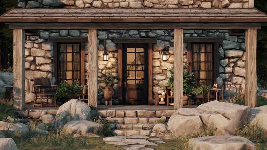 Bring comfort outdoors by adding a stone fireplace to your patio. Rough stones help connect your porch to the natural surroundings. (Vierra, 2022) This lets you enjoy your outdoor space longer, giving you a warm place to gather on cool evenings.