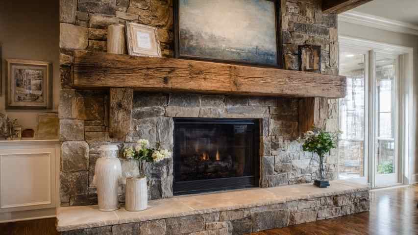 Adding a wood mantel is a simple way to soften the look of heavy stone. A solid piece of reclaimed wood brings warmth and a sense of history to an old stone fireplace. (15 Unique Stone Fireplace Ideas for Your Home, 2025) It also gives you a spot for a painting or family photos, making the room feel welcoming and comfortable.
