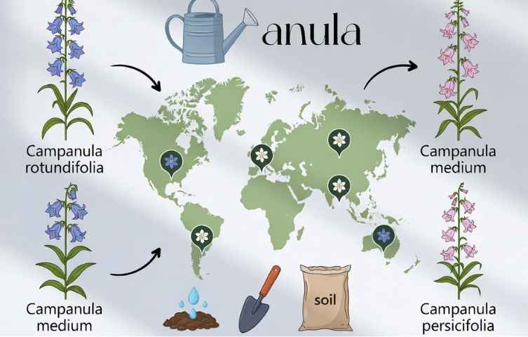 While most bellflowers need well-drained soil, some alpine species, like Campanula saxifraga, require very sharply drained conditions, allowing them to grow in unique spots like rock walls. Soil pH needs vary, but most do well in neutral soil.